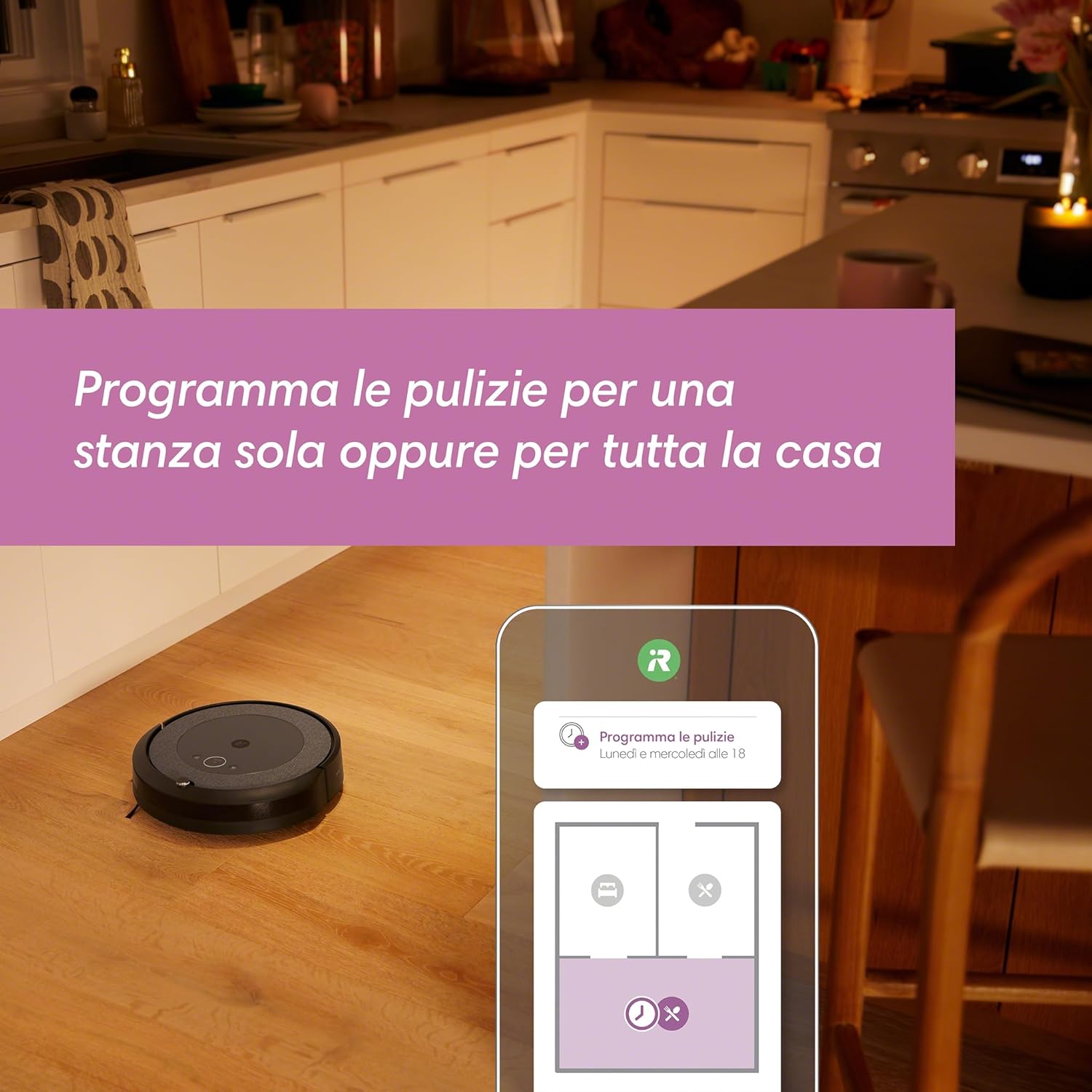 Il robot aspirapolvere e lavapavimenti Roomba Combo i5 solleva la polvere e i detriti più ostinati grazie a un potente motore di aspirazione, pulisce battiscopa, pareti e angoli con la spazzola laterale che agisce a filo parete ed evita gli accumuli di peli e capelli con le doppie spazzole in gomma multi-superficie. Con il contenitore dell'acqua e il panno in microfibra, si trasforma in un sistema lavapavimenti in grado di lasciare, a fine lavoro, il pavimento di casa lucido e splendente.